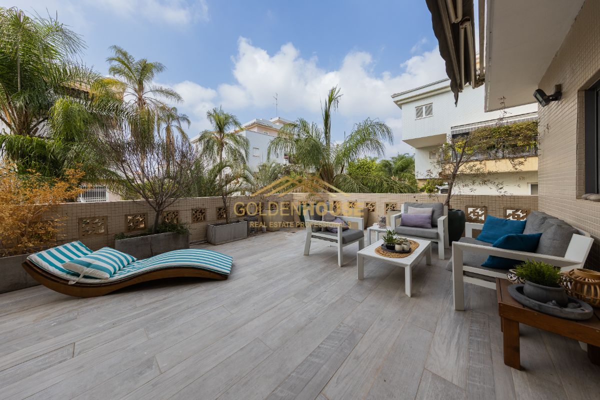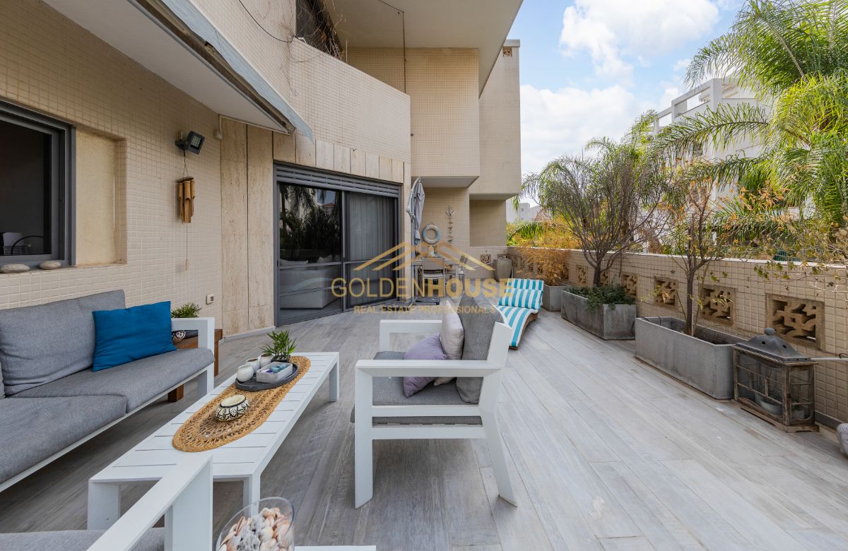 מרפסת שמש ענקית- 45 מ"ר, מושלמת לאירוח ופונה לגינה שקטה וירוקה